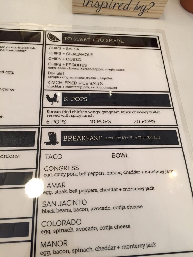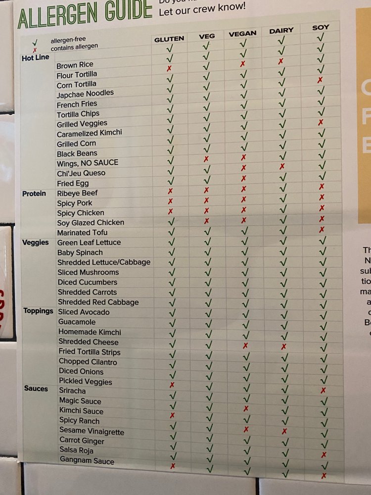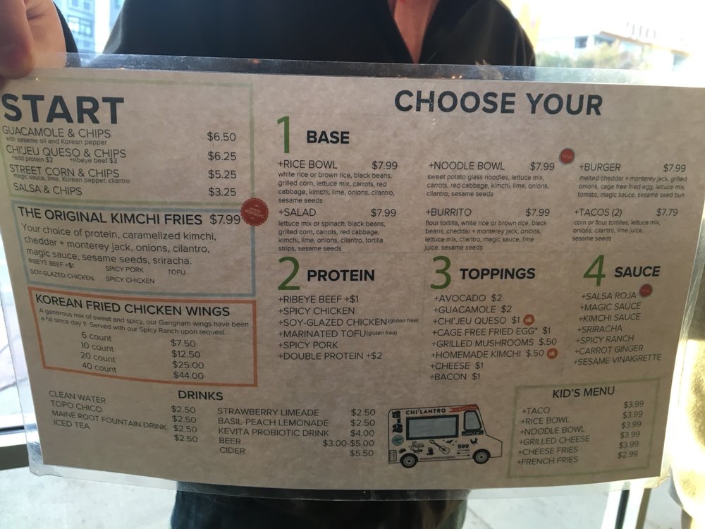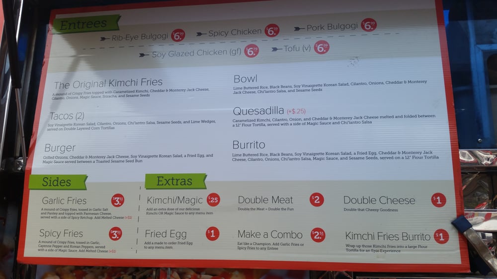 Choose one Korean BBQ option, one base, one corn or flour tortilla, and one topping