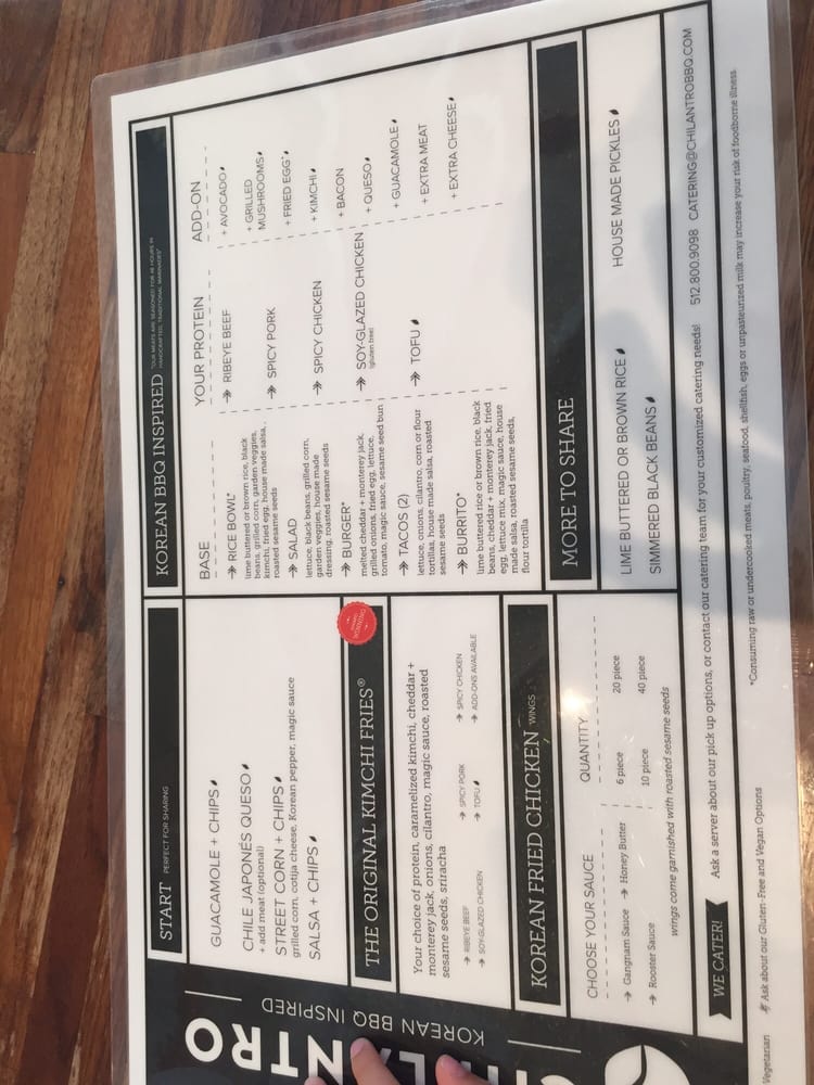 Located in Austin, TX, Chi'Lantro offers a unique fusion of Korean and Mexican flavors in their menu. With options like the ChiLantro B'bimbap, K'Pop Chicken Bowl, and Kimchi Fries, customers rave about the fresh and tasty ingredients. The signature Large Ssm (Wrap) and Create Your Own Small Ssm (Wrap) are also popular choices, showcasing the brand's commitment to quality and customization. Reviews praise the friendly service, clean environment, and the restaurant's minimalistic vibes. Customers appreciate the ample portion sizes and a variety of options for both meat-eaters and vegetarians. Overall, Chi'Lantro stands out for its vibrant and flavorful dishes, making it a must-visit spot for those craving a delicious and culturally diverse dining experience.